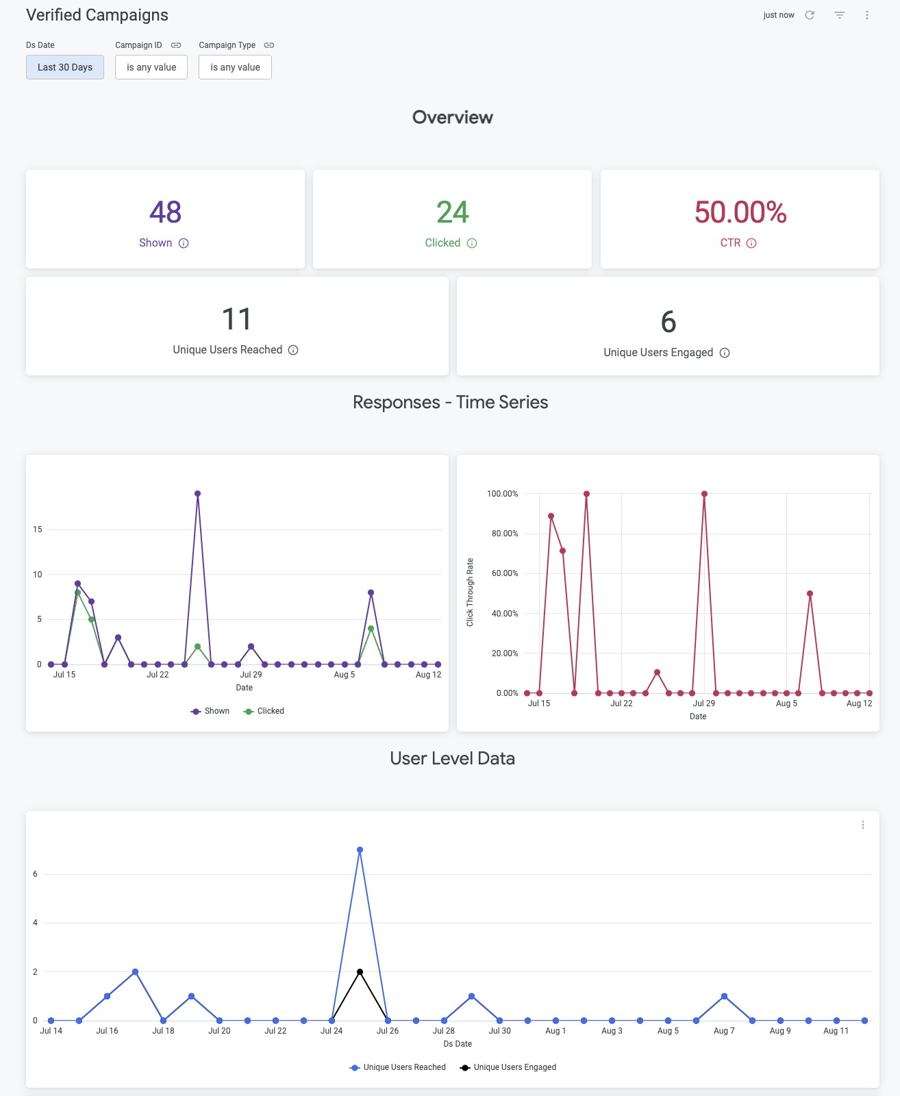 Navigate to "Analytics" tab to view unified campaign analytics :